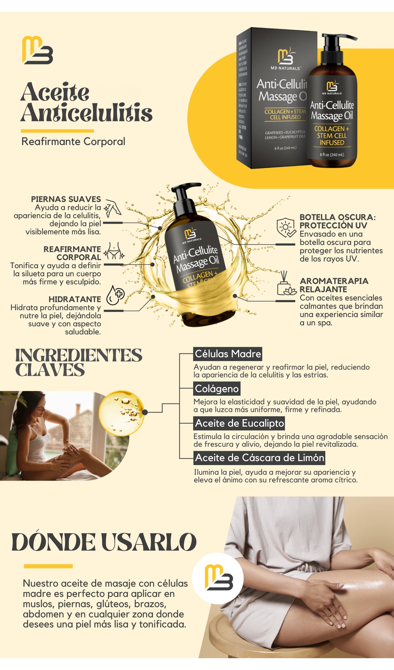 “La celulitis me tenía mal, pero lo ignoraba. Hasta que un día no quise ponerme un vestido por miedo a lo que iban a ver. Este aceite se volvió mi ritual diario, y aunque no soy otra persona, sí me siento otra mujer: más segura, más conectada, más yo.”