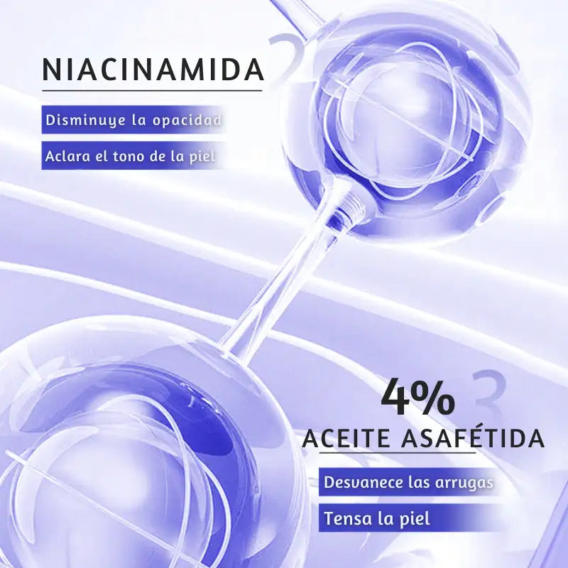 Niacinamida: Ilumina la tez, mejora el tono desigual de la piel y reduce la opacidad.