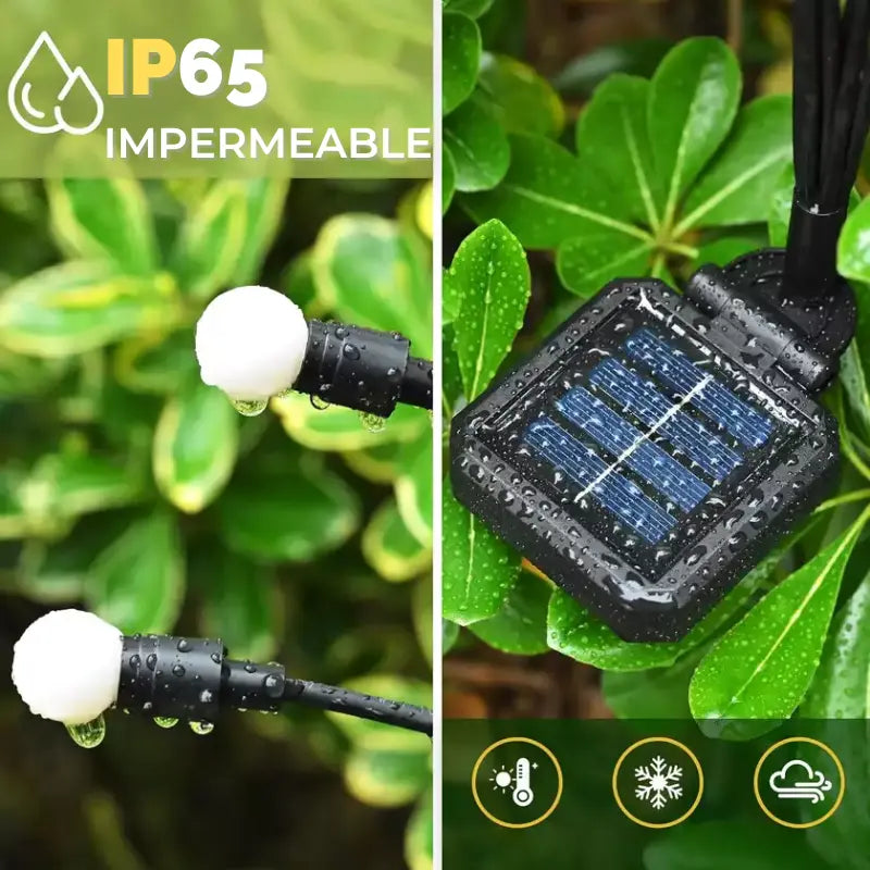 Llueva o truene, nuestras luces solares son 100% impermeables y listas para cualquier clima.