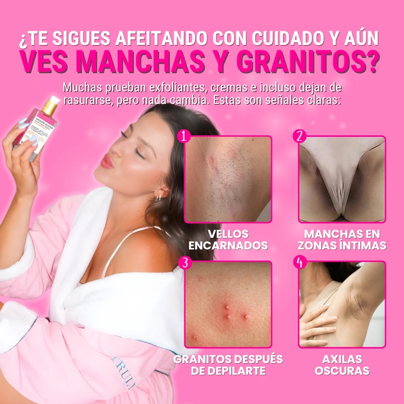 "Las zonas oscuras y los vellos encarnados me hacían sentir sucia, aunque me cuidaba mucho. Después de unas semanas usando el suero, mi piel cambió por completo. Ahora puedo verme y sentirme linda sin esconderme."