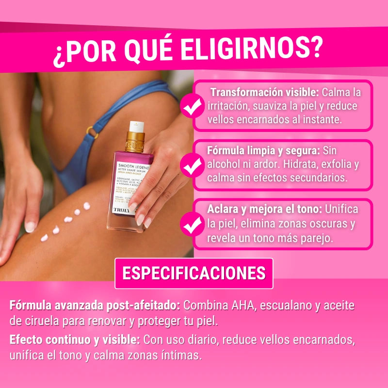 "Me ardía, me picaba, y ni hablar del enrojecimiento. Me daba hasta miedo depilarme. Desde que uso Smooth Legend, mi piel está suave, clara y sin dolor. Es el único producto que me entiende de verdad."