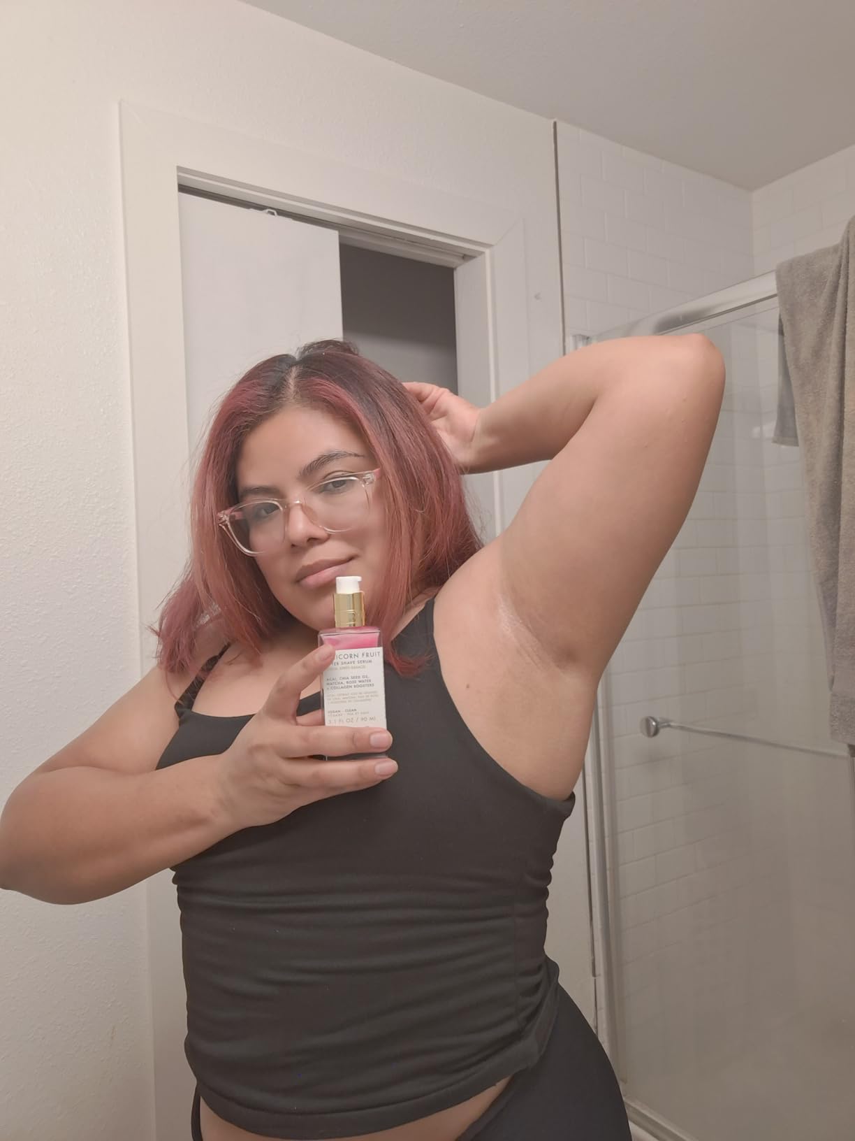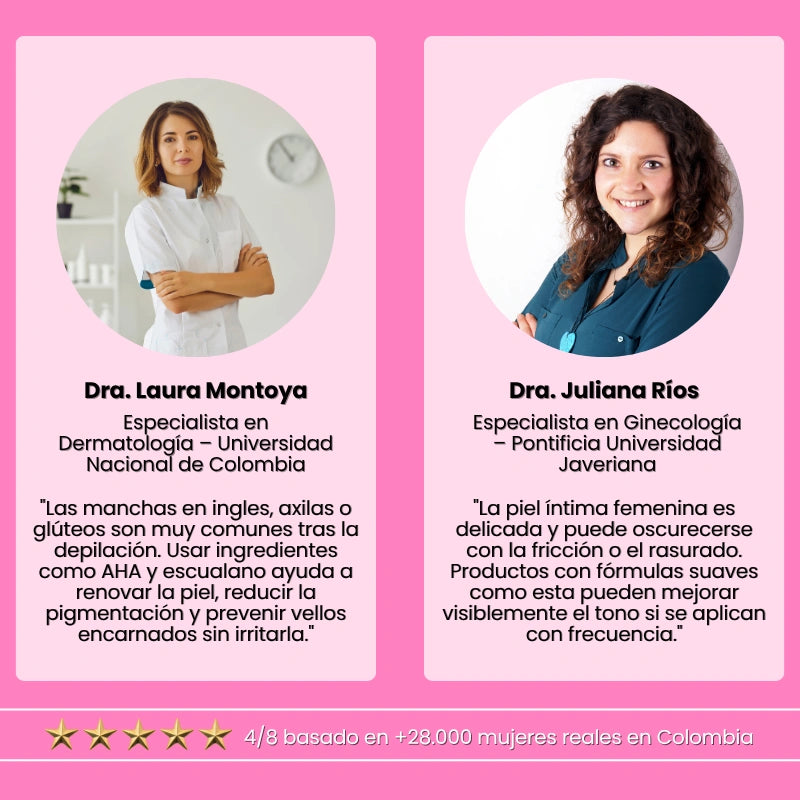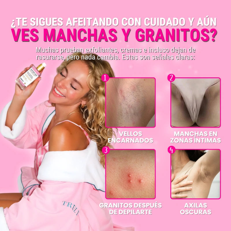 "Las zonas oscuras y los vellos encarnados me hacían sentir sucia, aunque me cuidaba mucho. Después de unas semanas usando el suero, mi piel cambió por completo. Ahora puedo verme y sentirme linda sin esconderme."
